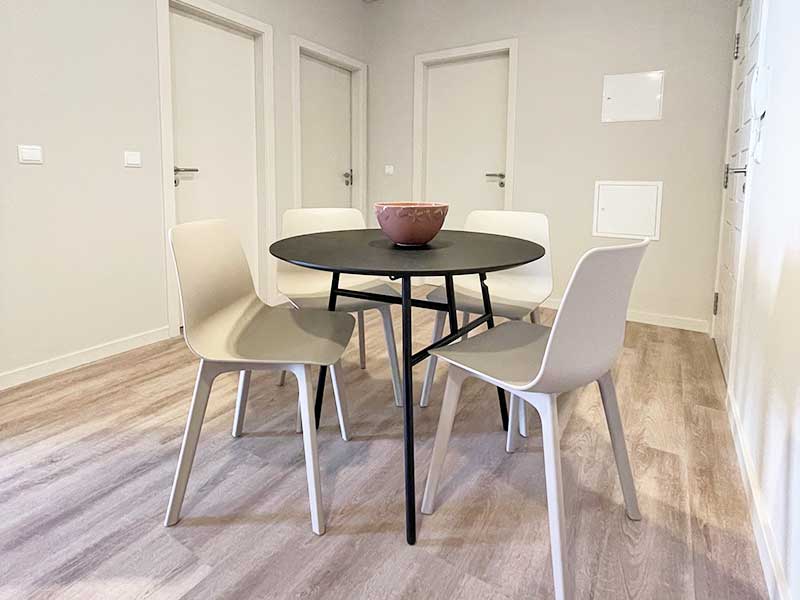 First floor modern and cosy apartment located in walking distance of Funchal. The apartment Is newly furnished for a comfortable carefree stay. This apartment has a spacious bathroom, a dining area, lounge with two bedrooms one which hosts one double bed and the second a double sleeper couch with ample cupboard space in both. The apartment is equipped with all the essentials needed to cook and wash from home. If you want to relax outside there is a balcony equipped with a table and chairs.
